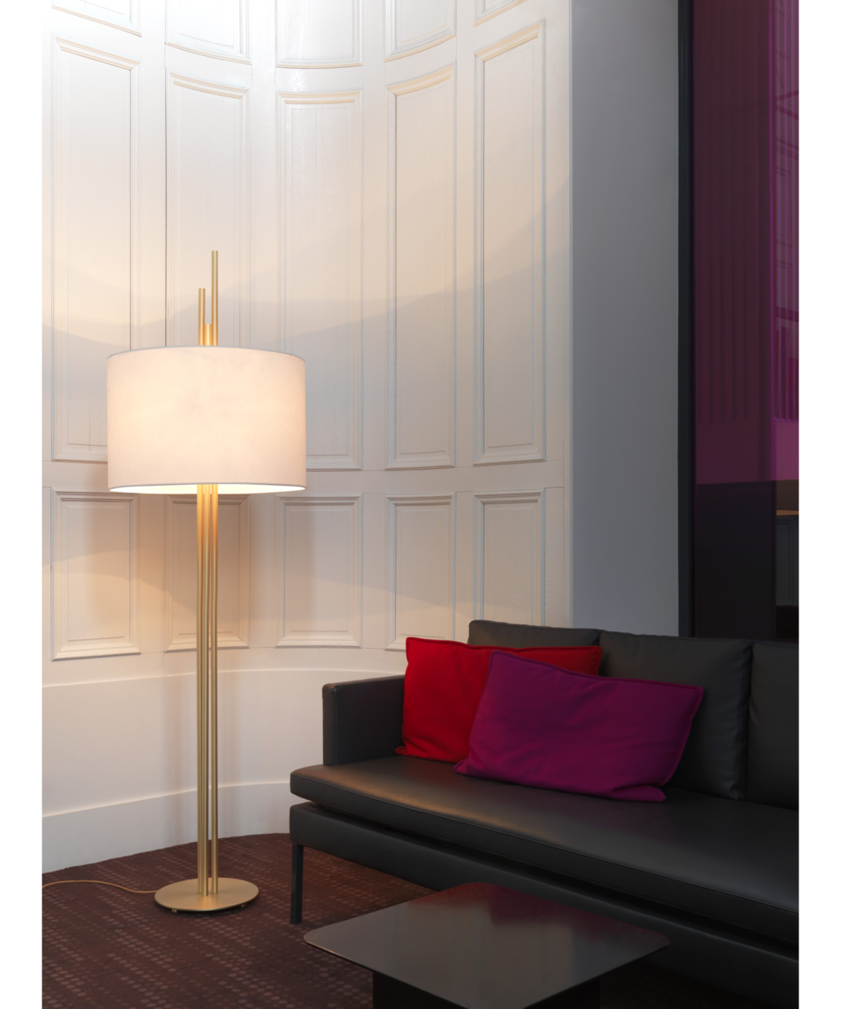 A unique floor lamp with large dimensions, Upper uses space as a valuable and useful object. Tall with straight brass tubes, this light is inspired by Manhattan’s skyscrapers.