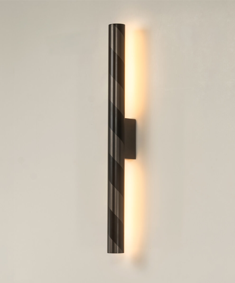 La collection Candy a été conçue pour mettre en valeur le cœur du savoir-faire de CVL, soit le travail et la mise en forme du laiton sous forme de tubes. Il en résulte une collection à la fois rigoureuse et épurée, où les objets sont réduits à l’essentiel pour exprimer la pureté du métal et la précision des finitions caractéristiques de CVL. Cependant, cette apparente sobriété est subtilement complétée, voire contrebalancée, par un motif laqué en spirale qui s’enroule autour du tube tel un sucre d’orge. Ce décor apporte une touche d’excentricité, tout en évoquant la gourmandise et l’univers de l’enfance, créant ainsi un contraste ludique avec la technicité sobre de la collection.