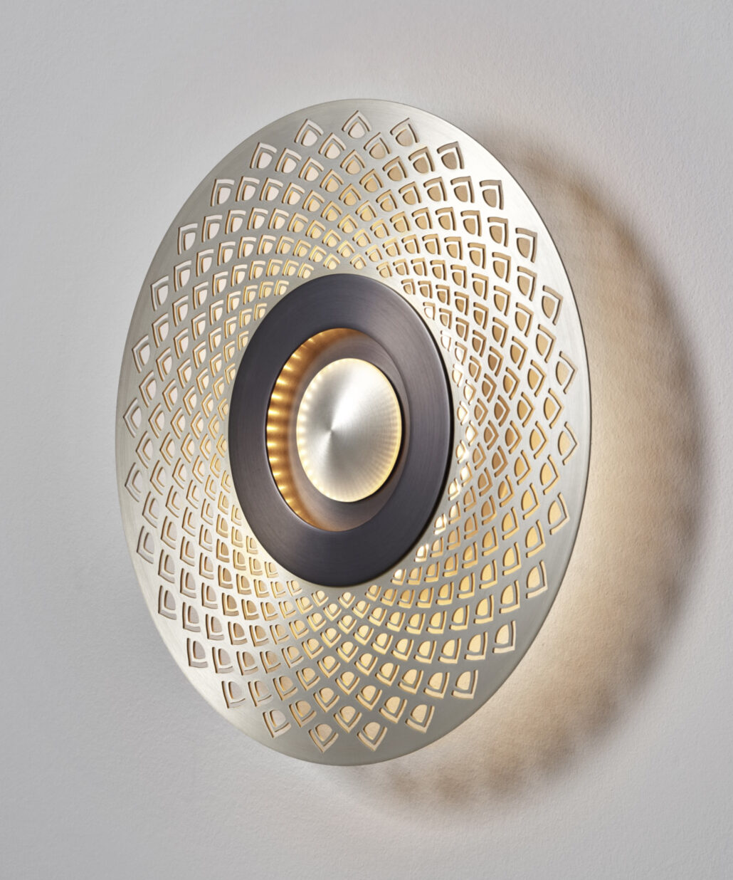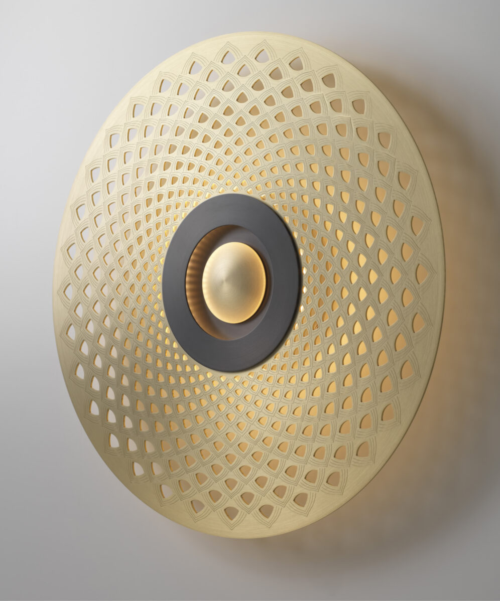 Un cœur lumineux, serti d’un métal ajouré de manière extrêmement fine ou d’un disque plein, confère à cette collection une touche Art déco. Du clair-obscur au moucharabieh, les idées de composition sont variées.