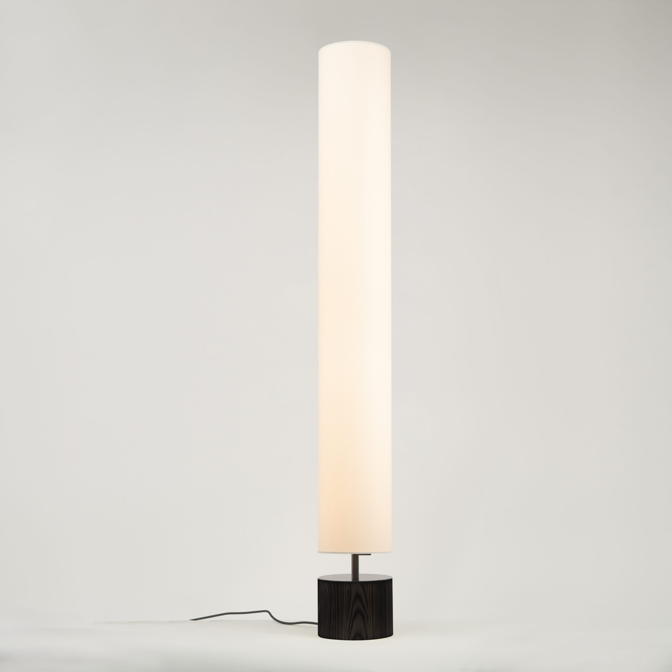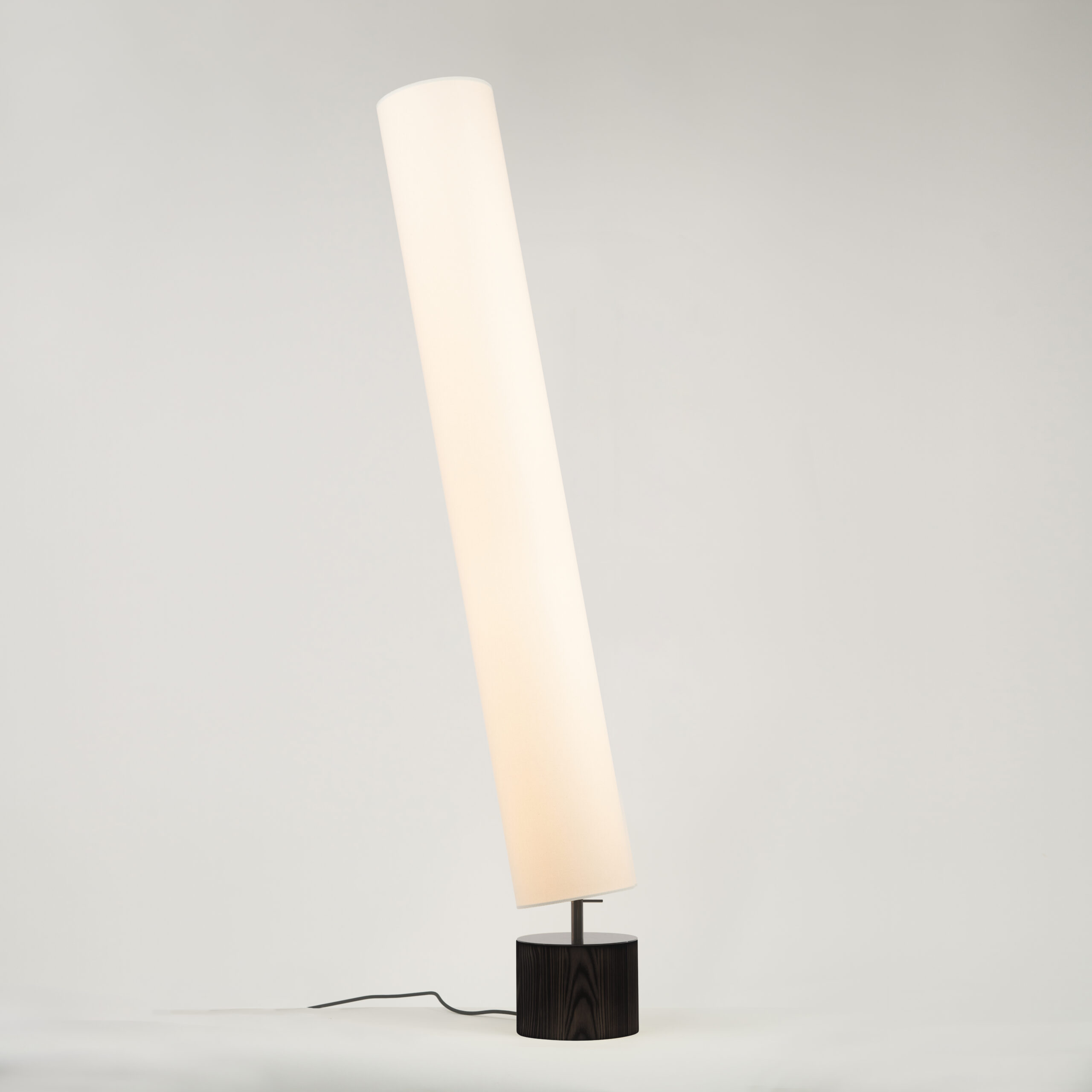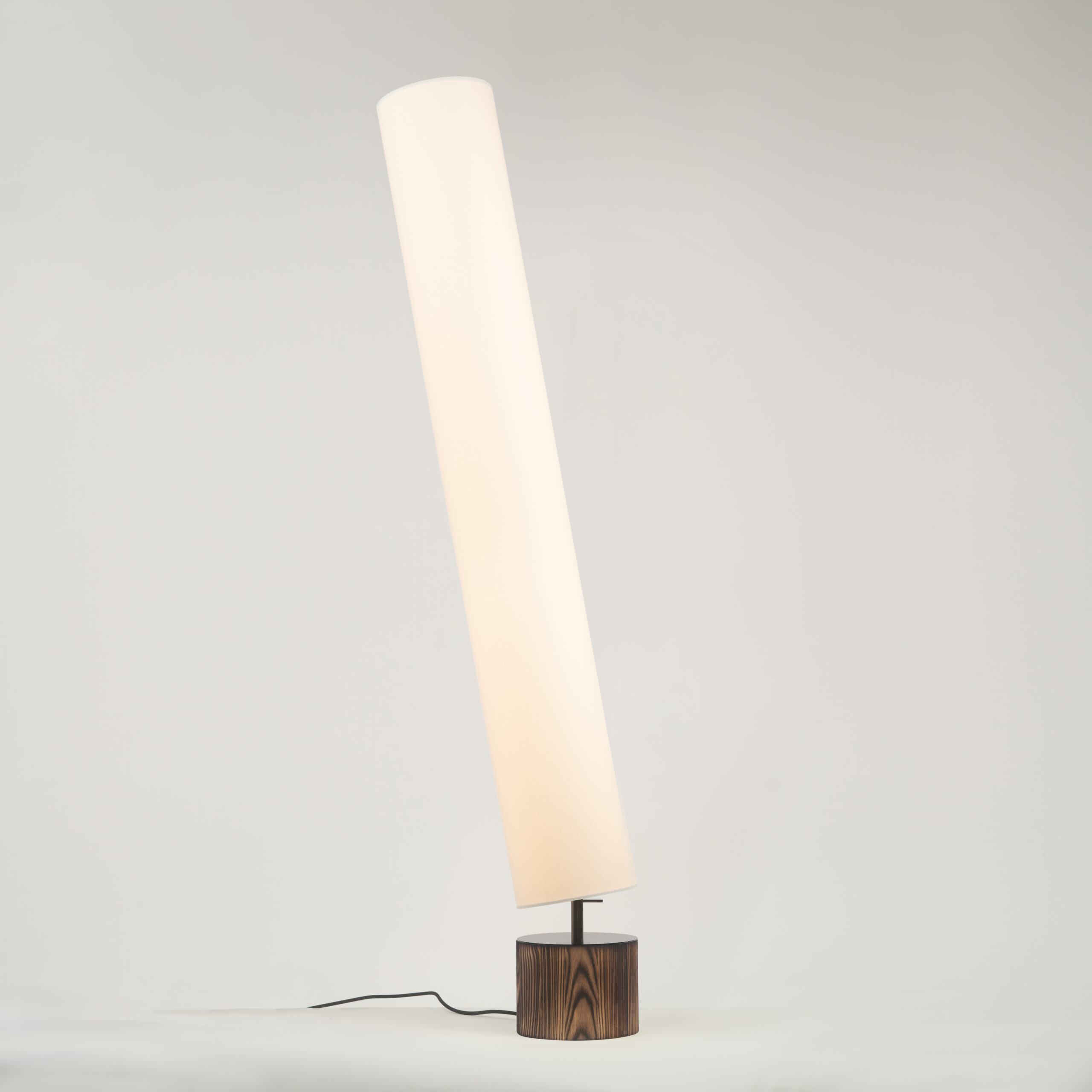 Les Clopes se compose de lampadaires, lampes à poser et suspensions. Leur nom transgressif mais souriant, emblématique de l’esprit d’un créateur jonglant habilement entre les références à la culture populaire et celles de l’excellence, provient de leur longue forme élancée en tube. Pour leur pied, José imagine une finition en métal laqué blanc ou noir, en variante au laiton satiné. Et puis, en écho à sa fascination pour les métiers d’art japonais, celui-ci développe le bois brûlé ou toasté, une technique inédite que la manufacture a dû intégrer à sa palette de pratiques. La sensorialité d’une telle matière se fond harmonieusement avec celle des abat-jours en lin.