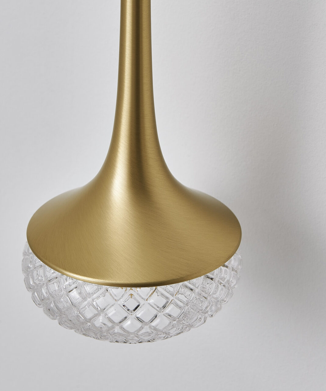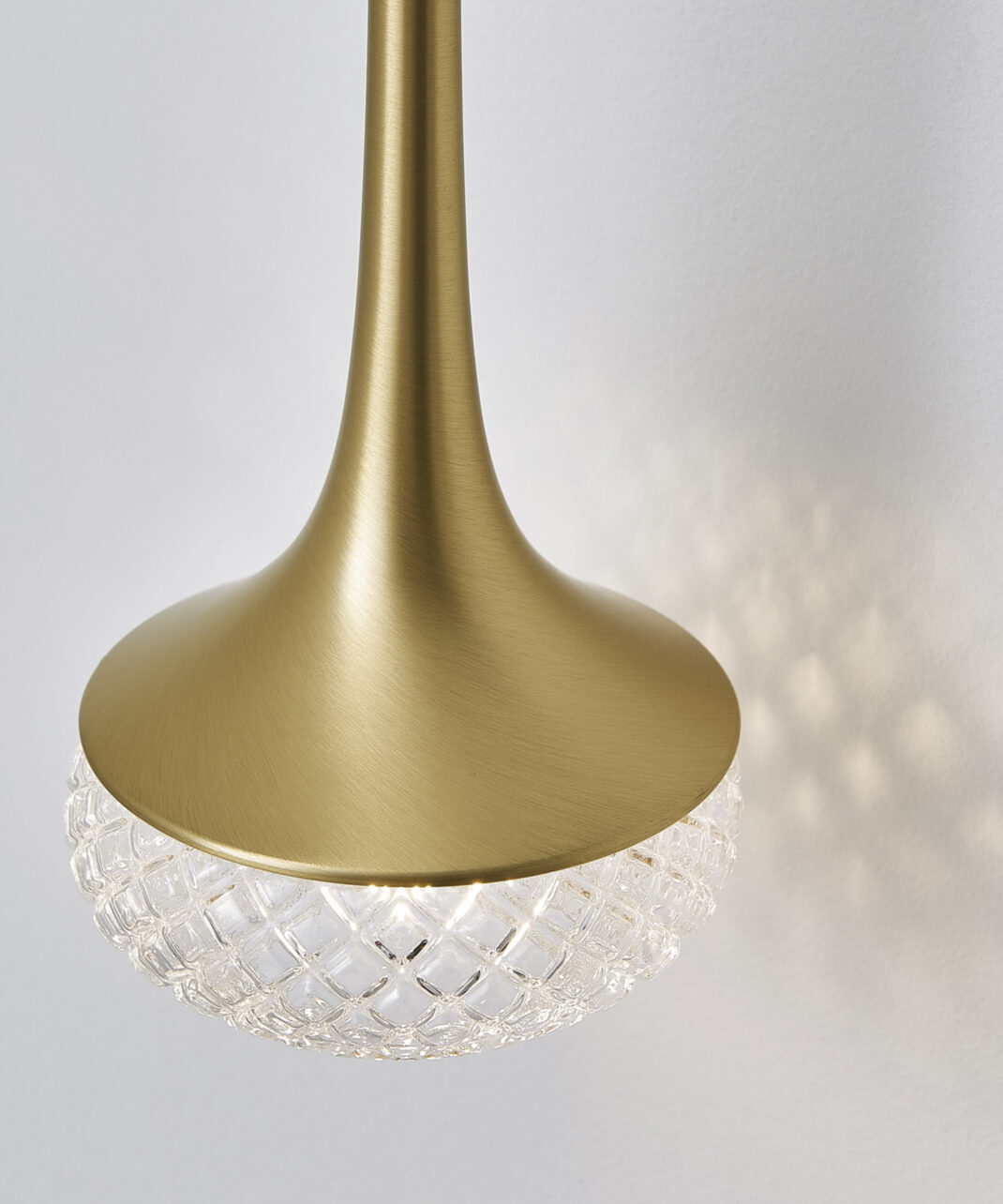 Collection inspirée par le célèbre artiste de jazz, les suspensions Louis et les appliques Fléa jouent des effets de lumières avec le verre et le laiton. Modulables, créez vos compositions de « trompettes » à l’envi.