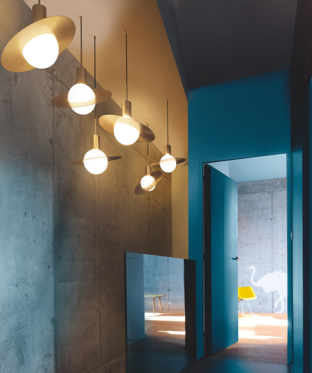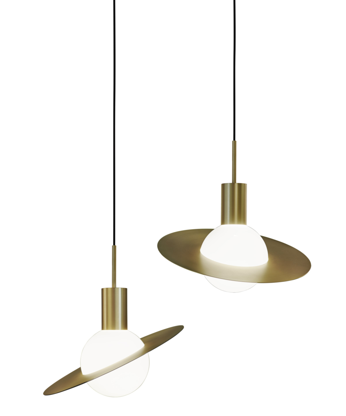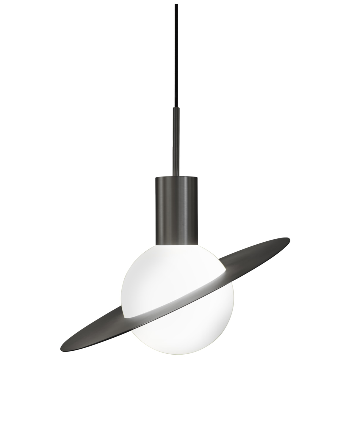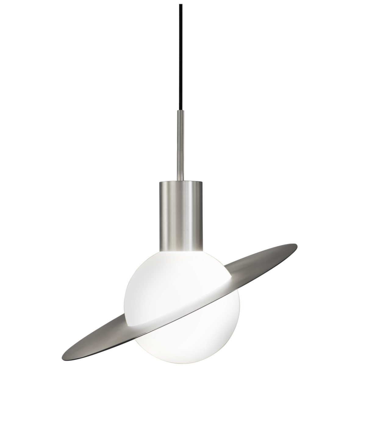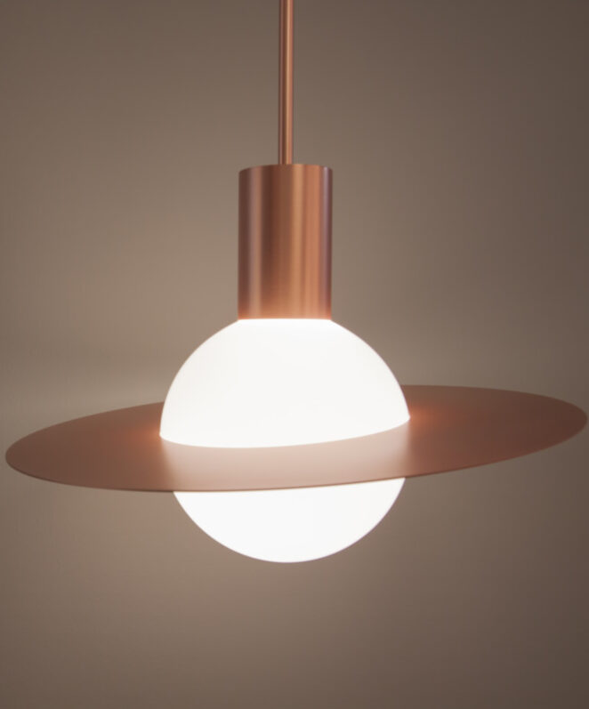 La sphère lumineuse est ici prétexte au voyage dans le système solaire. Munie d’un anneau en laiton orientable, la suspension Saturne devient le reflet de votre vision du cosmos.